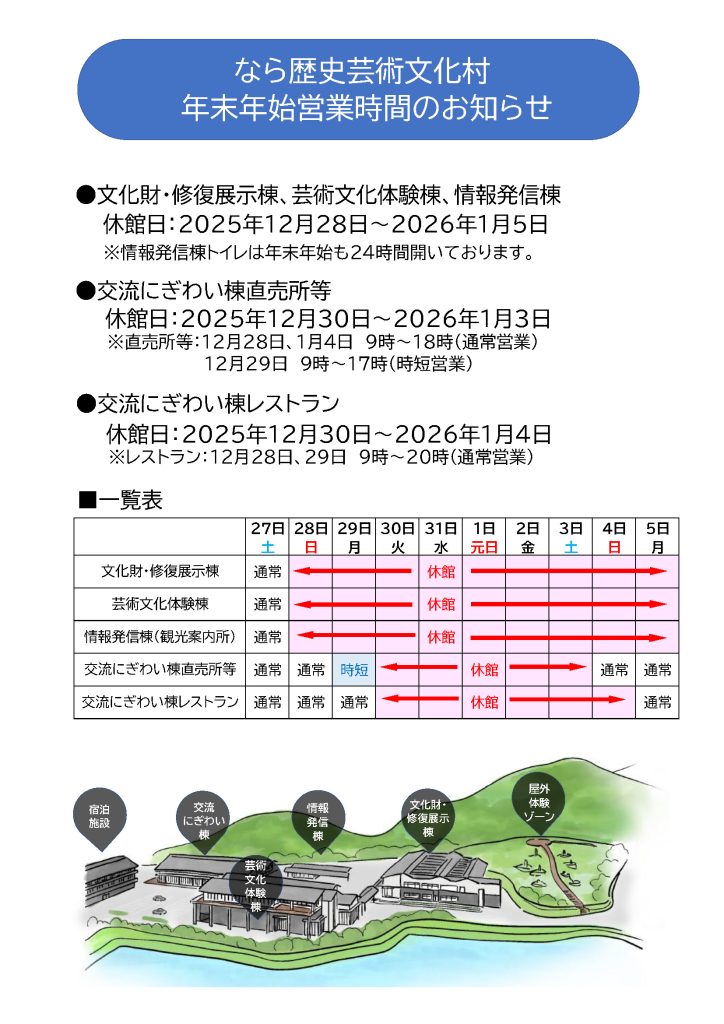 【なら歴史芸術文化村】年末年始営業のお知らせ